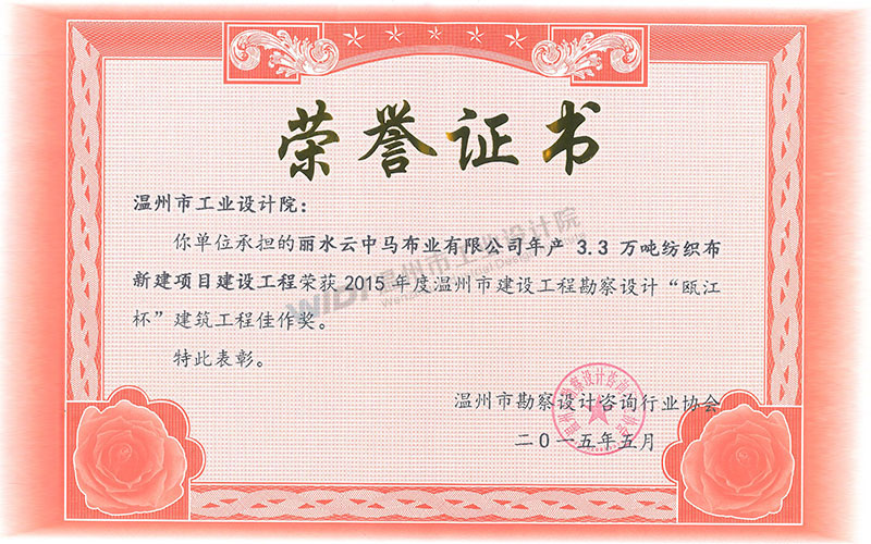 麗水云中馬布業(yè)有限公司年產3.3萬噸紡織布新建項目建設工程 甌江杯建筑工程佳作獎