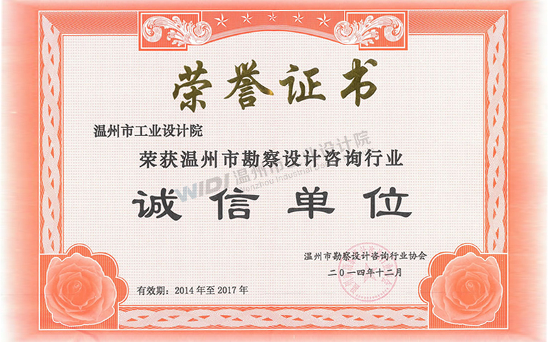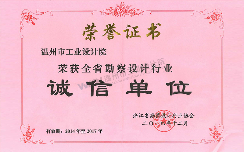 溫州市勘察設(shè)計(jì)行業(yè)誠信單位證書2024-2026