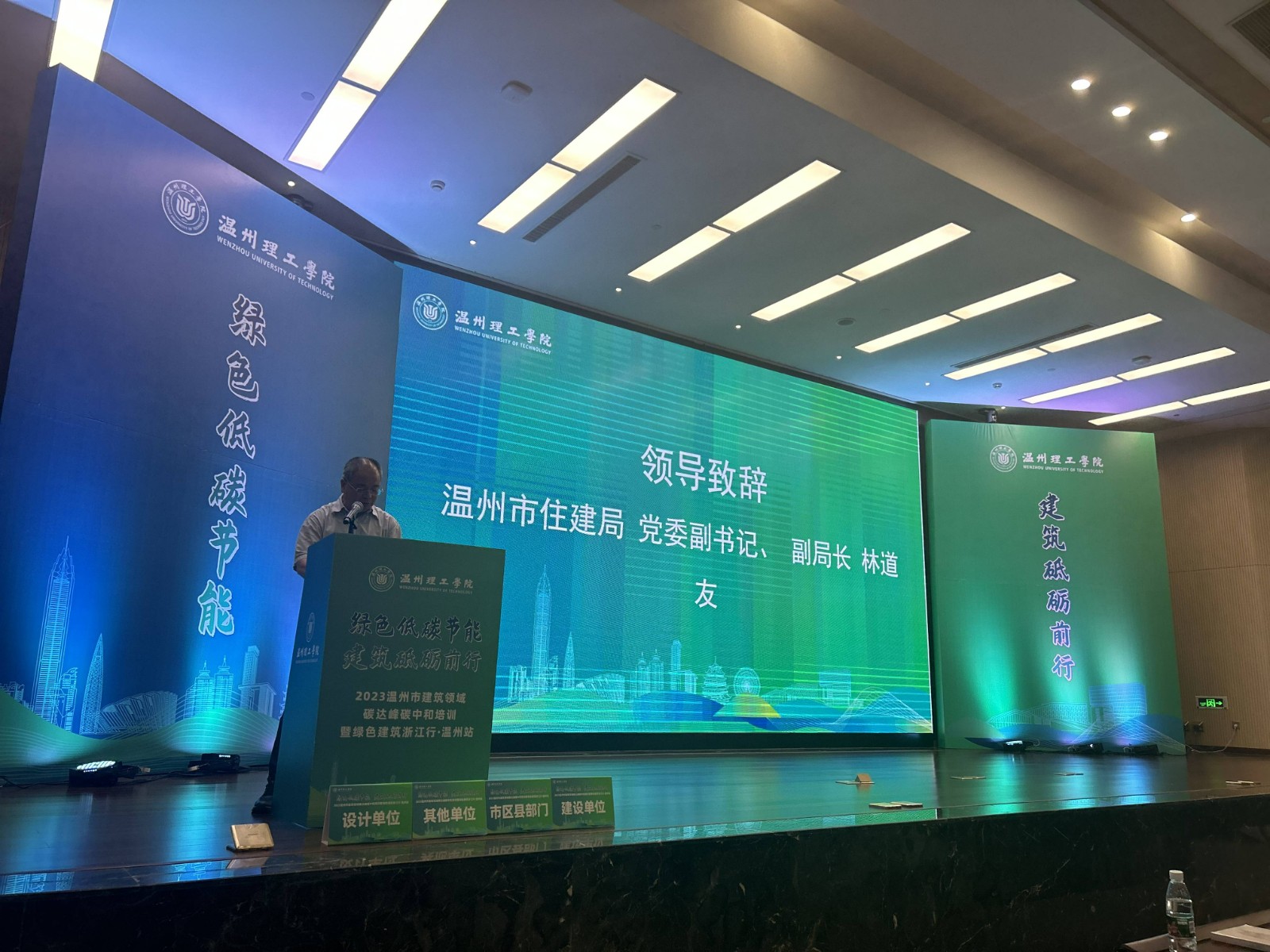 5月26日,由溫州市住建局主辦,浙江省綠色建筑與建筑工業(yè)化行業(yè)協(xié)會、溫州市綠色建筑與建筑工業(yè)化促進會等單位共同承辦的“2023溫州市建筑領(lǐng)域碳達峰碳中和培訓(xùn)暨綠色建筑浙江行·溫州站”在溫州理工學(xué)院隆重召開。來自北京、上海、杭州和溫州的相關(guān)領(lǐng)域?qū)<覍W(xué)者,以及政府部門、建設(shè)單位、設(shè)計單位、施工圖審查咨詢中心和行業(yè)企業(yè)代表等200余人參加本次論壇。