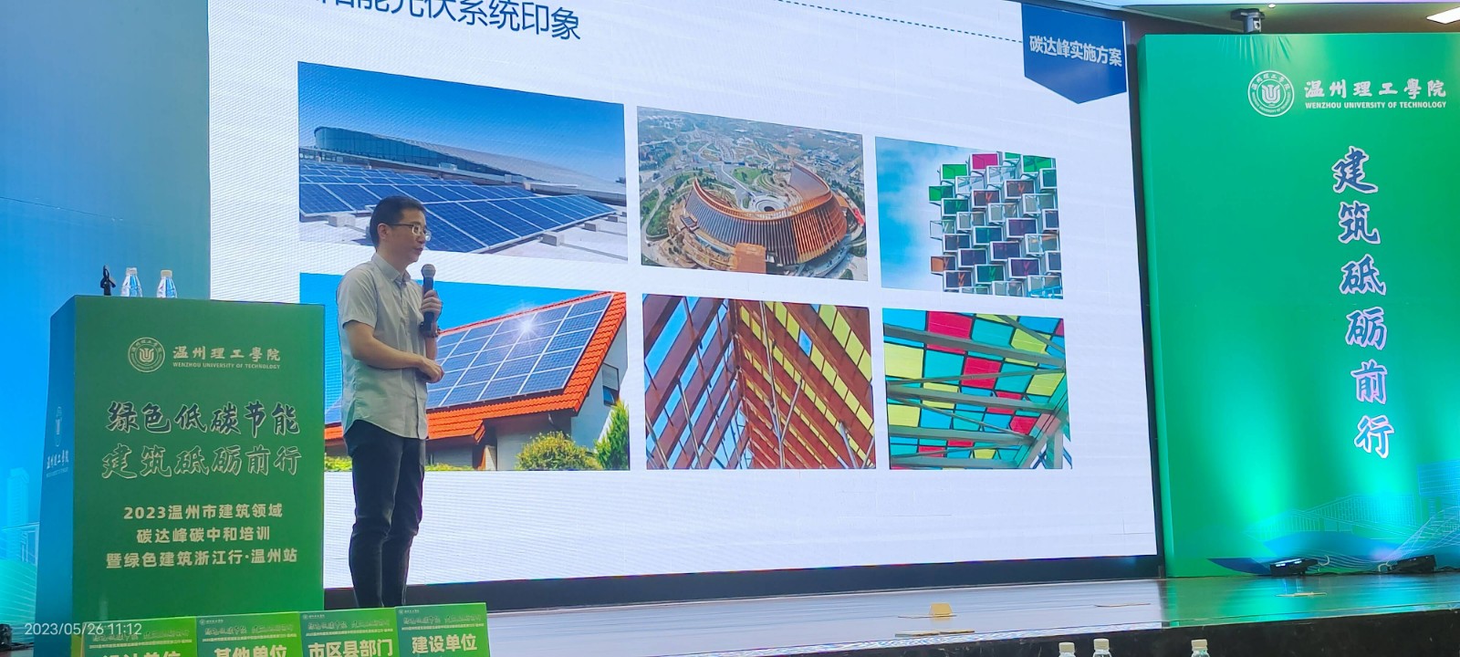 本次論壇聚焦“建筑領(lǐng)域碳達峰碳中和”主題,圍繞建筑領(lǐng)域碳達峰實施方案、綠色建筑專項規(guī)劃、公共建筑能效提升、近零能耗建筑等內(nèi)容進行探討。工業(yè)院低碳所副主任萬志美作為集團代表應(yīng)邀參加此次活動,并以《溫州市建筑領(lǐng)域碳達峰實施方案、溫州市綠色建筑專項規(guī)劃解讀》為報告主題分享了溫州市住建局、溫州設(shè)計集團和工業(yè)院在建筑雙碳領(lǐng)域所做的工作,介紹了溫州建筑行業(yè)的新要求、新理念、新做法、新材料,強調(diào)了設(shè)計師對實現(xiàn)建筑領(lǐng)域雙碳目標的重要性。