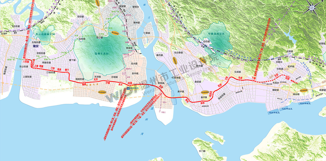 本項目位于浙江省溫州市,路線起點位于樂清市城東街道下塘,終點位于東山街道人民路。S2線遠(yuǎn)期由下塘向北經(jīng)虹橋延伸至雁蕩山。線路全長62.945km,近期設(shè)車站20座,其中地下站1座,其余均為高架站,平均站間距3.28km。
